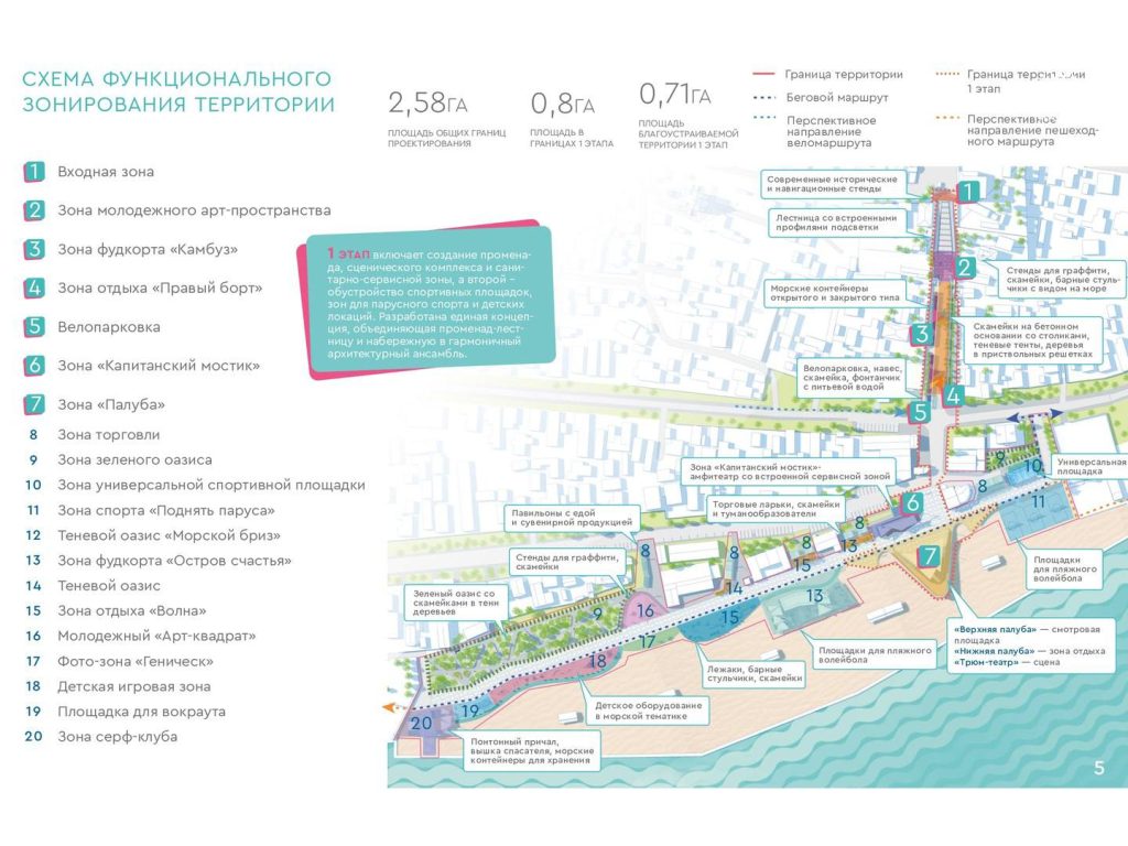 Проект «Эко-Фолк-Геническ» преобразит прибрежную зону, создавая современное и многофункциональное пространство для отдыха, спорта и творчества. В основе концепции — морская тема, отражающая дух города.
